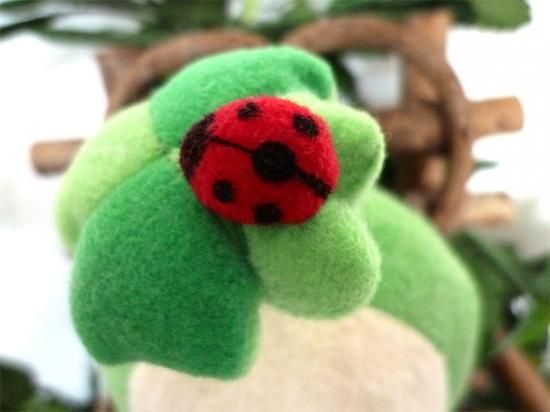頭のクローバーには、仲良しのてんとう虫さんがいつでも一緒。
